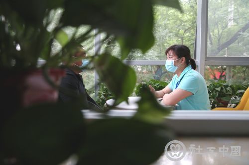 (6月12日,高建华与一位社区戒毒人员谈心。定期回访制度使她了解戒毒人员的生活情况,解决他们的困难,为其提供服务。郝鑫城 摄)